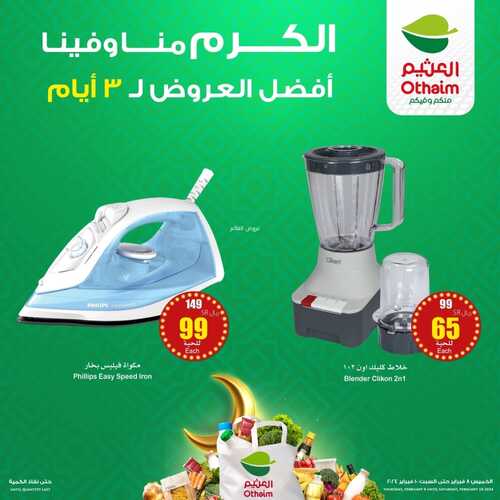 عروض العثيم لهذا اليوم 8 فبراير 2024 الموافق 27 رجب 1445 أفضل العروض الـ 3 أيام