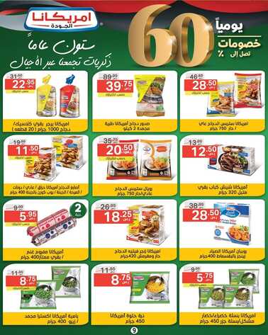 دجاج امريكانا ، رقائق هشة بيف بيستري امريكانا ، بيتزا ريستوانيت لفائف جبنة بالفيتا بالاضافة الى ذلك ، بامية اكسترا