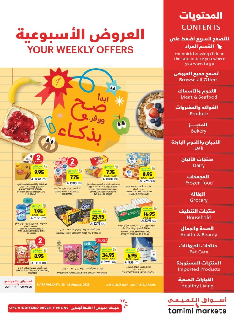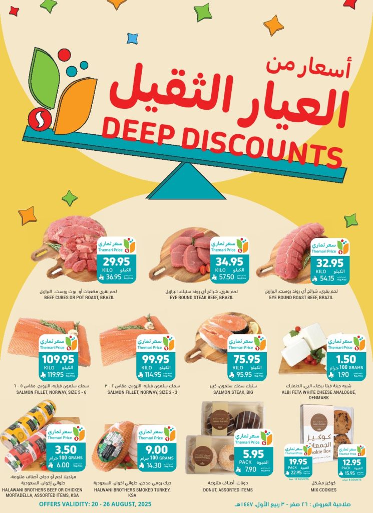 أغسطس هو الوقت المثالي للتخطيط… جهّز حقيبة النجاح مع عروضنا الخاصة. استعد لتجديد مخزون مطبخك بأفضل الأسعار. نقدم لك مجموعة واسعة من الأطعمة الطازجة والمعلبة والمجمدة، كلها بتخفيضات حصرية لكي تستمتع بالجودة دون أن تدفع الكثير. لا تدع هذه الفرصة الذهبية تفوتك!