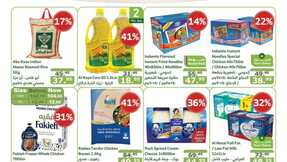 ارز مزة بسمتي ماركة التلفون و لحم تونا خفيف يوتان ,  ساديا ناجت الدجاج ، ساديا برجر الدجاج ، ساديا ناجت الدجاج، ساديا صدور الدجاج بدون عظم ، ساديا كبدة الدجاج ، بيرفيتو معكرونة ، كويكر معكرونة ، السعودية معجون الطماطم ، ريو ماري سلاتونة ، ومجموعة من المنظفات وهي : برسيل جل للغسيل اخضر او ازرق ـ برسيل مسحوق غسيل الاخضر ، برسيل شامبو العباية اناقة ، بريل سائل لتنظيف الصحون ليمون جل التفاح ، اونو مناديل للوجه ، فا جل استحمام ، بيبي جوي حفائض ، اكسترا وايت مسحوق غسيل ،زيت دوار الشمس نور , معكرونة وفرة او الجود كويتي  و فول مدمس حدائق كاليفورينا او حمص مسلوق حدائق و  ديتول معقم لليدين ، ديتول نيدو كيس , المراعي حليب طويل الاجل , يومي خبز ابيض شرائح , الراعي زبدة غير مملحة , فيتا مرتديلا , رويال برجر دجاج او بقري , دو نقانق الدجاج , امريكانا اصابع الدجاج , السعودية ايس كريم في صور البروموشور