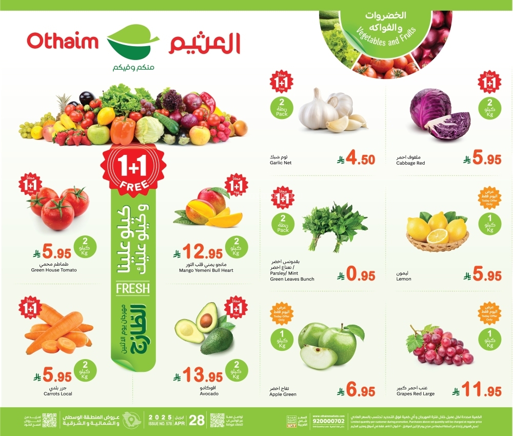 عروض العثيم الطازج 28 أبريل 2025 الموافق 30\10\1446 مهرجان الخضار الطازج + العروض الأسبوعي