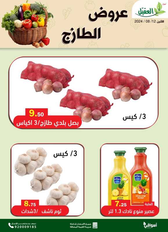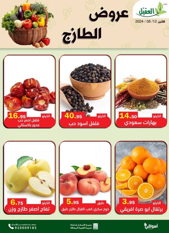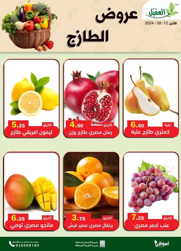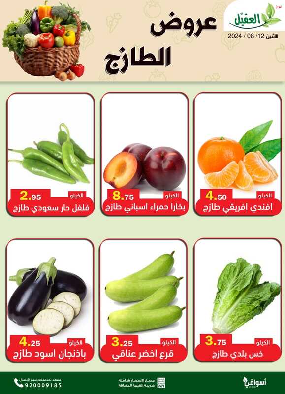 عروض أسواق العقيل اليوم 12 أغسطس 2024 الموافق 8 صفر 1446 عروض الطازج