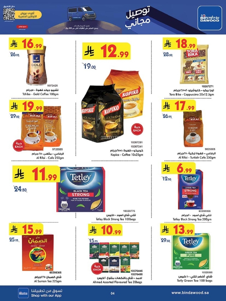 • ☕ تخفيضات استثنائية على القهوة، الشاي، ومسحوق الشوكولاتة ومستلزمات المشروبات الساخنة.