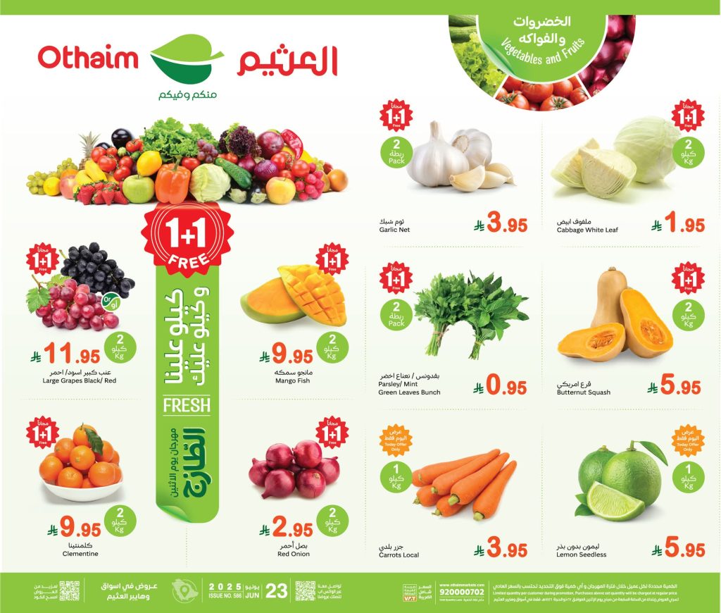 العثيم الطازج ليوم الاثنين 23 يونيو 2025 الموافق 26\12\1446 كيلو عليك وكيلو علينا