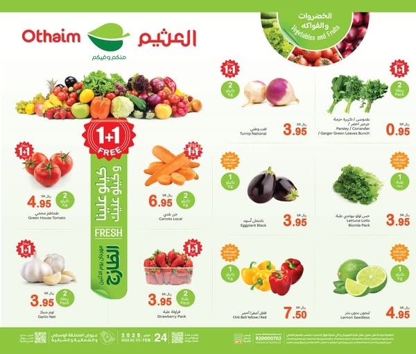 عروض العثيم الطازجة الرمضانية بصفحة واحدة 24 فبراير 2025 الموافق 25\8\1446 كيلو عليك وكيلو علينا