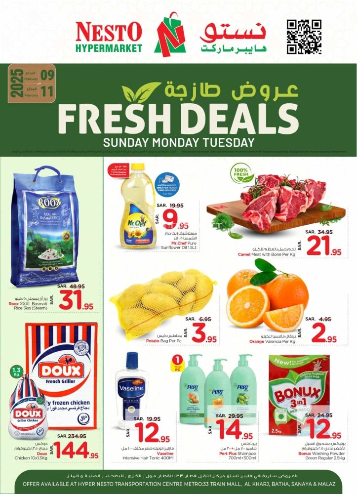 عروض نستو الرياض والقصيم الطازج بصفحة واحدة مقاضي رمضان 9 فبراير 2025 الموافق 10\8\1446 عروض الـ 3 أيام الميجا