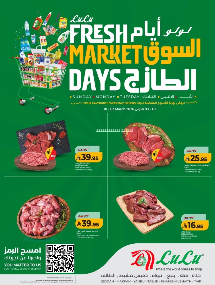 عروض رمضان من لولو جدة وتبوك 1 مارس 2026 الموافق 12 رمضان 1447 عروض الطازج لمدة 3 أيام & العروض الأسبوعية عروض رمضان من لولو جدة وتبوك 1 مارس 2026 الموافق 12 رمضان 1447 عروض الطازج لمدة 3 أيام & العروض الأسبوعية ومع اقتراب شهر الخير والبركة 🌙، سنخصص لكم تغطية مميزة لأقوى عروض رمضان في كبرى السوبرماركت في السعودية 🛒🔥. مع حلول شهر رمضان المبارك، تأتي الفرصة للتسوّق الذكي والاستفادة من خصومات مذهلة 🛒. في البداية، في سوبرماركتنا نقدم لكم كل ما تحتاجونه لإعداد وجباتكم الرمضانية اليومية 🍲، بدءًا من المنتجات الطازجة 🥩🍅🥛، مرورًا بالتوابل والزيوت 🍚، وصولًا إلى كل ما يجعل مائدتكم مليئة بالبهجة والنكهة. 🍬 علاوة على ذلك، استمتعوا بعروض رائعة على الحلويات التقليدية والحديثة 🍫، بالإضافة إلى المشروبات الرمضانية المنعشة 🍹، لتكتمل أجواء الشهر الفضيل بكل سعادة وفرح. 🎁 كما أن عروضنا تشمل جميع أفراد العائلة، من منتجات الأطفال 👶 إلى مستلزمات المنزل 🏠، مع خصومات يومية لتلبية احتياجات الجميع بسهولة وبأسعار مناسبة 💰. 💻 بالإضافة إلى ذلك، يمكنكم متابعة كل عروضنا عبر موقعنا عروض العالم وطلب كل ما تحتاجونه مباشرة إلى باب بيتكم 📦🚪 لن تحتاجوا للانتظار أو الزحام، فجميع عروض رمضان متاحة لكم ببضع نقرات فقط 🖱️🌟. 📢 ولا تنسوا، تابعونا يوميًا لاكتشاف كل جديد واستفيدوا من التخفيضات الكبيرة التي تجعل رمضانهذا العام أكثر متعة وسهولة على موقع عروض . 🥳 في النهاية، اجعلوا شهر رمضان مليئًا بالفرح، التسوق الذكي، والطعام الطازج مع سوبرماركتنا .