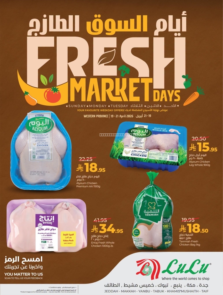 عروض لولو جدة وتبوك اليوم 19 ابريل 2026 الموافق 2 ذو القعدة1447 عروض الـ 3 أيام الطازجة & العروض الأسبوعية
