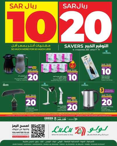 عروض لولو جدة وتبوك الأسبوعية بصفحة واحدة 15 سبتمبر 2024 الموافق 12 \ 3 \ 1446 عروض الـ 10 , 20 ريال
