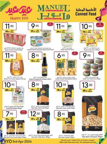 عروض مجلة مانويل الرياض الأسبوعية 3 ابريل 2024 الموافق 24 رمضان 1445 عروض مجلة مانويل الرياض الأسبوعية 3 ابريل 2024 الموافق 24 رمضان 1445 . سنقدم لكم أفضل العروض الأسبوعية فور صدورها ضمن المملكة العربية السعودية هدفنا الأساسي تقديم الأفضل لكم بما بتناسب مع أزواقكم ومتطلباتكم , لا تفوتوا عروض اليوم 3-4-2024 الموافق 24-9-1445. استعدوا خلال الأيام المقبلة لاستقبال عروض رمضان والتي ستكون الأقوى لهذا العام. عروض مجلة مانويل الرياض : أقوى التخفيضات سنقدمها لكم من خلال عروض شهر رمضان 2024 . تيفاني توفي نوتي باتيس ، ليلاك وجبة خفيفة بنكهة الذرة ، بريفنحز بطاطس متنوع ، بالفيتا نخالة كيلجا بسكويت ، رويال برنس حمص متنوع ، سميدلي فاصولياء مطبوخة ، حدائق كاليفورينا حدائق فول مدمس ، اندومي شعيرية دجاج نكهة الدجاج الخاصة ، هبة فكر شرائح علبةكاملة ، ذائقة شعيرية ، نانما حمص اسود مجروش ، ننما ماش اخضر ، نستو عدس احمر متنوع ، هاريتام بوتو بانيرمتنوع أفضل العروض والتخفيضات لقدوم العيد : كما يتوافر ضمن عروضنا أوفر العروض لشهر رمضان المبارك . جبنة فيتا سعودية بيضاء ، قشطة مصري طازجة ، جبن اسكندرية مصرية ، سلطة مرتديلا مشكلة بالخضار ، زيتون مشكل محشو بالفلفل ، زيتون اخضر اردني متنوع ، جبن اسطنبولي قطع ، جبن رومي ، جبن ميش مصري اصفر بينما يوجد ايضا كذلك ، مخلل ليمون مصري ، مخلات مصرية مشكلة ، مزيج الزبدة الغير مملحة ، روبيان مزارع طازج ، فستق جامبو مملح سادة . تابعونا على موقعنا عروض العالم لمعرفة المزيد