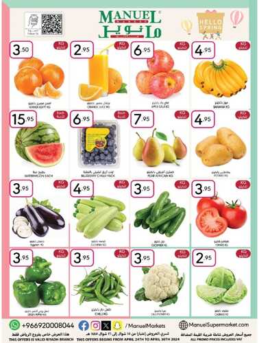 عروض مانويل الرياض غداً الأربعاء الأسبوعية 24 ابريل 2024 الموافق 15 شوال 1445 Hello Spring