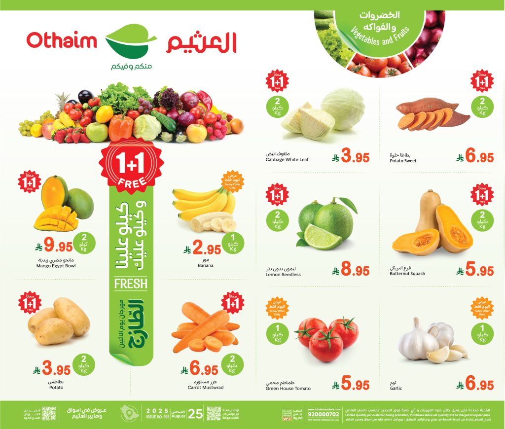 عروض العثيم الطازج الاثينن 25 اغسطس 2025 الموافق 2\3\1447 كل يوم اثنين كيلو عليك وكيلو علينا & العروض الأسبوعية