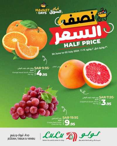 عروض لولو جدة وتبوك بلس 30 يونيو 2024 الموافق 24 ذو الحجة 1445 تخفيضات نصف السعر+ عروض الأسبوعية