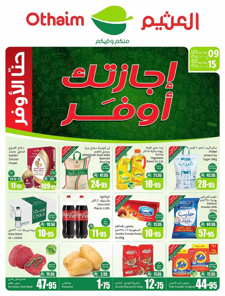 عروض العثيم لهذا الأسبوع الأربعاء 9 يوليو 2025 الموافق 14\1\1447 اجازتك أوفر معنا حنا الأوفر