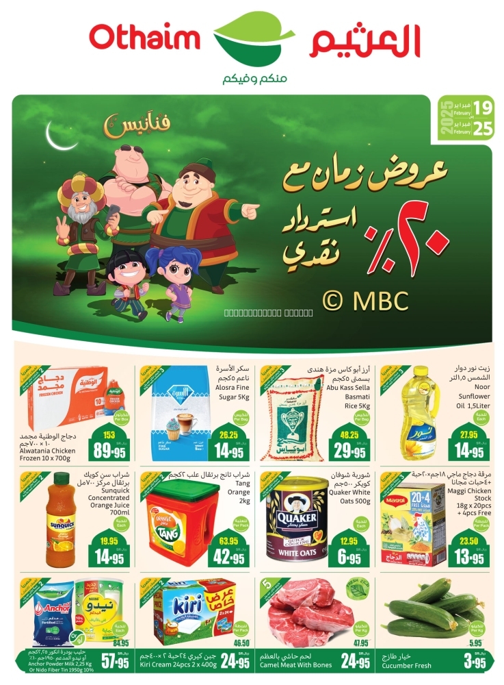عروض العثيم مجلة عروض رمضان الأسبوعية بصفحة واحدة 19 فبراير 2025 الموافق 20\8\1446 رمضان كريم وعروضنا أكرم مع استرداد نقدي 20%