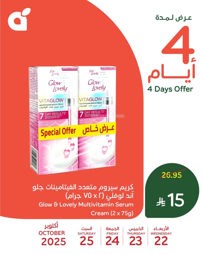 عروض بنده اليوم 22 اكتوبر 2025 الموافق 30\4\1447 عروض لمدة 4 أيام & العروض الأسبوعية