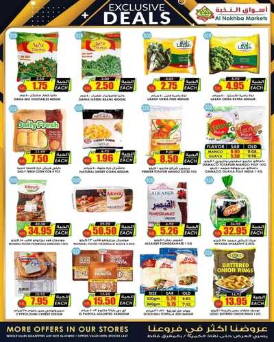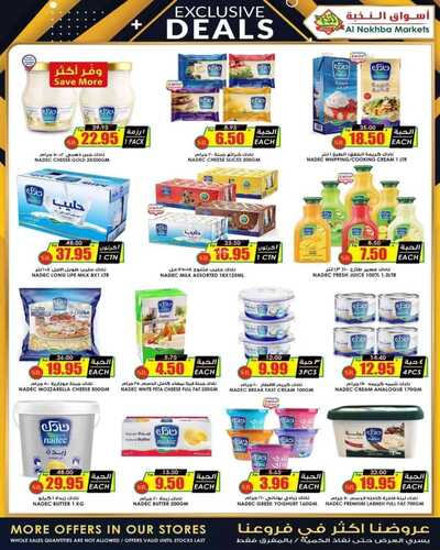 يوجد ايضا كذلك ، جبنة مربعات كيري ، جبنة شرائح بايد للساندويتش ، حليب ندى مكثفة محلى ، جبنة موزريلا مبشورة
