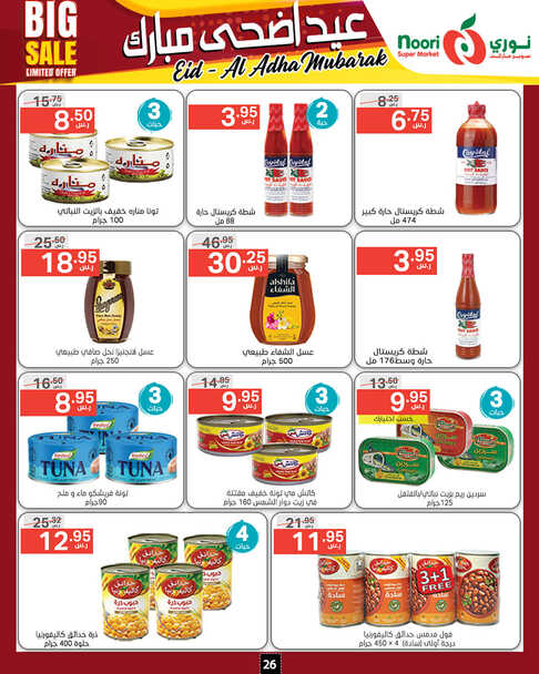 عروض نوري لهذا الأسبوع 12 يونيو 2024 الموافق 6 ذو الحجة 1445 أقوى عروض عيد الأضحى . سنقدم لكم أفضل العروض الأسبوعية فور صدورها ضمن المملكة العربية السعودية هدفنا الأساسي تقديم الأفضل لم بما بتناسب مع أزواقكم ومتطلباتكم , لا تفوتوا عروض اليوم 12-6-2024 الموافق 6-12-1445 . استعدوا خلال الأيام المقبلة لاستقبال عروض العالم والتي ستكون الأقوى لهذا العام.