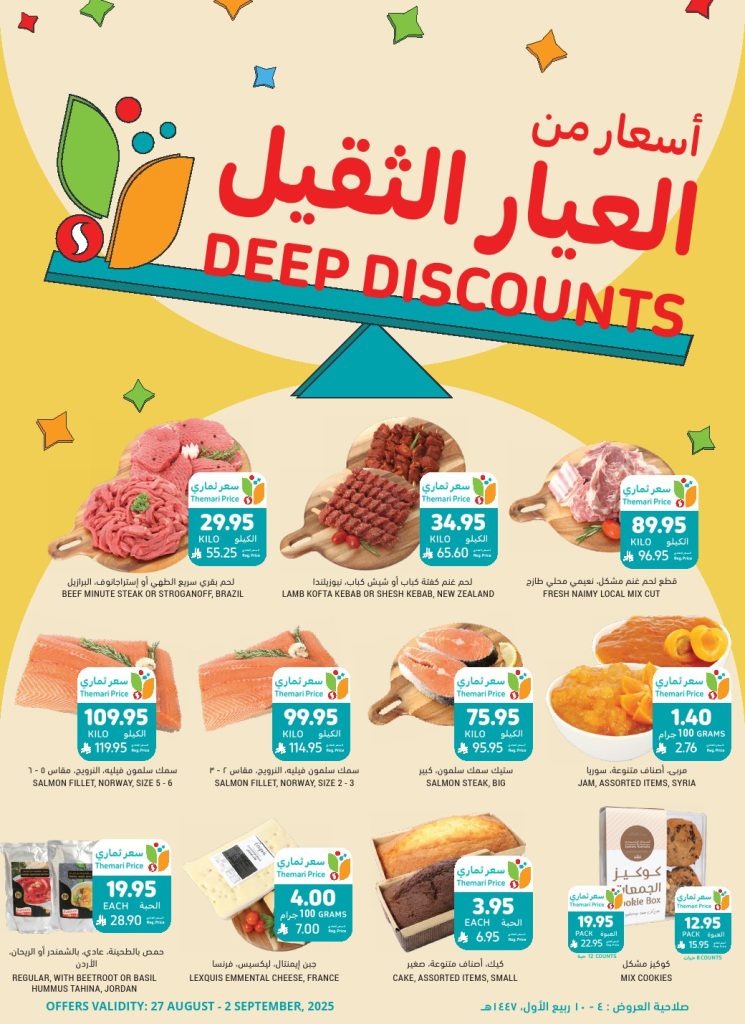 أغسطس هو الوقت المثالي للتخطيط… جهّز حقيبة النجاح مع عروضنا الخاصة. استعد لتجديد مخزون مطبخك بأفضل الأسعار. نقدم لك مجموعة واسعة من الأطعمة الطازجة والمعلبة والمجمدة، كلها بتخفيضات حصرية لكي تستمتع بالجودة دون أن تدفع الكثير. لا تدع هذه الفرصة الذهبية تفوتك!